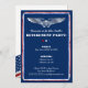 Looking for classy invitations for a friend or family member who is retiring from the navy / naval air force? Here is a unique, patriotic retirement party invitation featuring a silver emblem of the naval air force (wings & anchor) that you may customise! Personalise with your own custom text about your party details... Even add a photograph or additional information on the reverse side of this card which is illustrated with a waving American flag. Colour theme: red, white, blue & silver. Category: stars and stripes, United States of America (USA) enlisted military retirement cards + party invitations.
