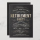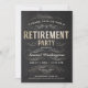 Retirement Party Invitations Vintage Scrollwork with faux gold foil. Minimalist, vintage, formal, fancy, elegant, old-fashioned calligraphy scrollwork on a chalkboard background