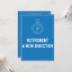 Modern and bold blue and white retirement party invitation to send to co-workers,family and friends. Design features a compass to show the new direction or new journey that the retiree is going to embark upon.