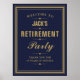 A stylish retirement party welcome sign can be personalised with your special event information in gold text on a navy blue background. Designed by Thisisnotme©