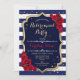Elegant navy blue white red design with faux glitter gold. Navy and white stripes with red roses. Perfect for an elegant retirement party.