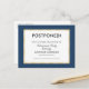Need to postpone your event? Send this postcard to let your guests know the change in plans. The simple design is accented with a dark blue and gold border.