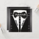 Trendy, cool and classy formal event and birthday party invitations with customisable text templates. DESIGN - An elegant gunmetal grey background frames a black and white tuxedo with bow tie.