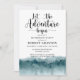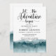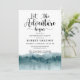 Let the adventure begin watercolor forest mountains retirement party invitation. Rustic theme. Blue green watercolors.