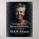 Retirement party welcome sign with photo, with a silver glitter frame.