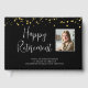 Celebrate a retirement with this fully customisable personalised guestbook, memory book or scrapbook featuring one photo, gold confetti, your custom title and text in your choice of text font styles, text colour and background colour. The sample shows the title HAPPY RETIREMENT in a modern handwritten script, the retiree's name, years of service and organisation name in white text on black. Change the font styles and colours in EDIT. Contact the designer via Zazzle Chat or makeitaboutyoustore@gmail.com if you'd like this design modified, on another product or would like coordinating items.
