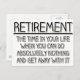 Retirement, the time in your life when you can do absolutely nothing and get away with it, hilarious retirement quote. This cute and funny retirement saying that would make a humourous retirement gift for a retirement party.