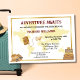 Embark on a New Journey: Celebrate the retiree's next chapter with our "Adventure Awaits" themed invitations. Featuring a whimsical flat world map, complete with a passport and plane, this card captures the spirit of travel and exploration. The golden border adds a touch of elegance, while the playful suitcases, hat, and sunglasses set the perfect vacation vibe. Customise the text easily to include all party details, from the name and date to the address and RSVP. On the back, inspire with "All the places he’ll go" and collect these invitations to create a heartfelt memory gift. Order now and make their send-off unforgettable!