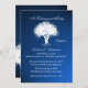Elegant sapphire blue retirement party invitation with white tree silhouette.