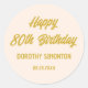 Retro fonts create a bold envelope gold and blush pink envelope seal. 4 lines of text let you customise your message. The first two lines here say Happy 80th Birthday in a bold retro script. The last two lines are in a simpler san serif. They provide the birthday celebrant's name and birthday. I designed this for maximum flexibility. You can change the background colour and add your own graphics if you want.