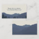 This retreat to the mountains website insert card is perfect for a modern wedding. The design features a serene blue watercolor mountain range with a forest of evergreen trees in the foreground.