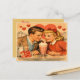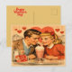 This retro postcard conjures up the sweetheart milkshake diner scene so prevalent in 1940s, 1950s, and early 1960s American culture. Bring a touch of vintage romance to your Valentine’s Day with this charming retro postcard featuring a classic diner moment. A young couple leans close over a shared milkshake, their smiles glowing beneath soft neon light. Behind them, playful heart-patterned wallpaper sets the perfect backdrop for a scene straight out of a mid‑century love story. This postcard captures the innocence, joy, and timeless sweetness of young love. Whether you’re sending it to someone special, using it as décor, or adding it to a vintage‑themed collection, it’s a delightful keepsake that celebrates romance in true retro style. Perfect for Valentine’s Day greetings, scrapbooking, retro décor, pen‑pal letters, or gifting to anyone who adores nostalgic Americana. The text on the back is customizable. You can change "Happy Valentine's Day" by personalizing the postcard.