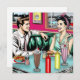 Retro pop art comic book style blank card. Could be for a man or the woman. Cute 1950's era couple sitting in a diner with milkshakes, fries and cheeseburgers on a date. Colours used are teal, pink, red, black and yellow. Old-fashioned nostalgia is invoked in this sweet customisable Blank card. This picture is hand drawn by myself.
