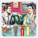 Retro pop art comic book style stickers. Cute 1950's era couple sitting in a diner with milkshakes, fries and cheeseburgers on a date. Colours used are teal, pink, red, black and yellow. This picture is hand drawn by myself.