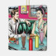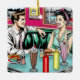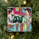Personalised Christmas ornament. Retro pop art comic book style ornament. Cute 1950's era couple sitting in a diner with milkshakes, fries and cheeseburgers on a date. Colours used are teal, pink, red, black and yellow. Old-fashioned nostalgia. This picture is hand drawn by myself.