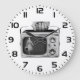 Keep time with a touch of mid-century elegance using this unique retro television wall clock. The clock face features a surrealist 1950s portable tv graphic in a monochrome palette, turning a functional timepiece into a work of vintage art. Perfect for home offices, kitchens, or living rooms, this black and white clock complements mid-century modern decor and antique electronics collections. It serves as a sophisticated conversation piece that celebrates the timeless aesthetic of the silver screen era while helping you stay on schedule in style.