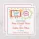 Fun and colourful retro fifties party invitations in hot pink, tangerine, green, gold and blue. Features a retro 1950s t.v. with stars. Easily customisable for you to add your own text. Front of invite reads like a television show!