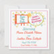 Fun and colourful retro fifties Save The Date cards in hot pink, tangerine, green, gold and blue. Features a retro 1950s t.v. with stars. Easily customisable for you to add your own text. Front of invite reads like a television show!