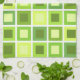 A simple mid century modern inspired abstract simple pattern with tiled squares in rows and columns. A great gift idea for anyone who loves minimalist 20th century art. This one has shades of bright chartreuse, yellow, and light green.