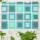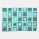A simple mid century modern inspired abstract simple pattern with tiled squares in rows and columns. A great gift idea for anyone who loves minimalist 20th century art. This one has shades of blue green, such as turquoise, aquamarine, teal, and ocean green.