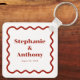 Retro 1950s Wavy Edge Dark Red Wedding Key Ring