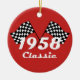Retro 1958 Classic Black & White Checked Race Flag Ceramic Ornament