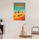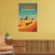 Embark on a timeless journey with our "Cairo Express" poster, a stunning piece of art that transports you back to the golden age of travel. Inspired by the classic airline posters of the 1960s, this artwork captures the romance and adventure of a bygone era. The scene unfolds under a magnificent turquoise sky, where a lone caravan of camels and their riders makes its way across sweeping, sun-drenched dunes. In the distance, the iconic pyramids of Giza rise in silent majesty, their timeless grandeur glowing in the warm light of the desert. The bold, mid-century typography and the vintage colour palette of sandy gold, burnt orange, and teal accents evoke a sense of nostalgia and wanderlust. This poster isn't just an image; it's a window to a world of historical wonder and classic style, perfect for anyone who dreams of adventure and appreciates the unique charm of retro design.