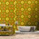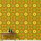 This watercolor wallpaper features a retro 1970's geometric pattern in green, red and orange. A bold statement for your bedroom, living room, hallway or office. Matching decor available.