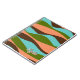 This notebook features a 1970s style design which boasts a stunning colour palette. The dominant colours featured are peach, olive green, teal, and dark brown. The design showcases abstract wavy stripes that add a touch movement to the overall aesthetic. These stripes are a nod to the artistic trends of the 1970s. To make this notebook truly unique, there is also the option to include custom text for your name.