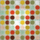 Lines connecting circles of various 1970s style retro colors, seamless repeat pattern
