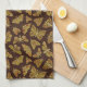 This kitchen towel features retro moths with flowers on their wings in popular colours from the 1970s such as orange and olive green.