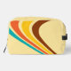 Your monogram with retro flair above 1970's style swooping stripes. The colour palette is turquoise, brown, yellow, orange and harvest gold, as was the fashion.