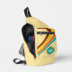 Your monogram with retro flair above 1970's style swooping stripes. The colour palette is turquoise, brown, yellow, orange and harvest gold, as was the fashion.