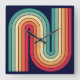 Retro 1970s Style Arched Stripes Geometric Pattern Square Wall Clock