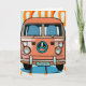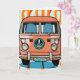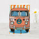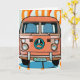 Wishing you a groovy birthday card! AI generated orange, blue and tan retro vintage 1970's style camping hippie van.