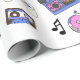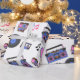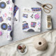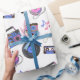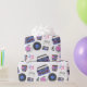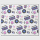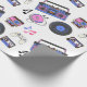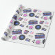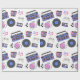 Retro blue and pink Vinyl Records, boomboxes, video gaming and cassette tapes birthday gift wrap.
