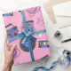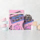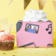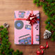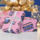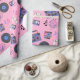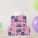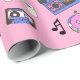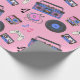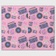 Retro blue and pink Vinyl Records, boomboxes, video gaming and cassette tapes birthday gift wrap.