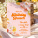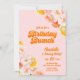 Floral Brunch & Bubbly Birthday Brunch Invitation in a vibrant pink and oranges colour theme and a retro touch.