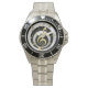 Has heft and feel of expensive stainless steel quartz watches. Good band with safety catch. I removed links, which is easy because engraved arrows show direction to push the linking pins. As always by this seller, the image (a railroad logo) is a perfect reproduction of my emailed image, and is precisely spaced and aligned.