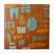Retro 50s Atomic Tiki Print Bronze Turquoise Ceramic Tile