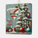 Retro 50s Cranberry Snowflake Christmas Martini Ceramic Ornament