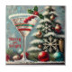 Retro 50s Cranberry Snowflake Christmas Martini Ceramic Tile