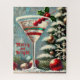 Retro 50s Cranberry Snowflake Christmas Martini Jigsaw Puzzle