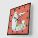 Retro 50s Martini Cocktail Time Mid-Century Salmon Square Wall Clock