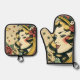 Retro 50s Style Crescent Moon Lady Oven Mitt & Pot Holder Set