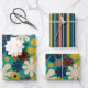 Retro 60s 70s Aesthetic Floral and Stripe Patterns Wrapping Paper Sheet