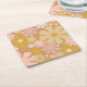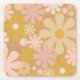 Retro 60s 70s Aesthetic Floral Pattern Square Paper Coaster