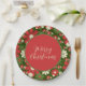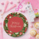 Retro 60s 70s Floral Merry Christmas Script Paper Plate