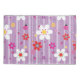 Bright, bold floral pillow case with smiling, dancing lady bugs on a pink and purple stripe background.