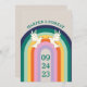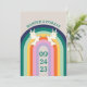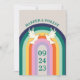 Retro 70s arch rainbow wedding invitation with doves and large numbers. Great retro stylish font makes it super cool and groovy. This stylish invite is sure to stand out! Wonderful and colourful it is perfect for a hippy laid back wedding vibe. Features popular large wedding dates. Wedding details are on the back. See coordinating items in our shop.